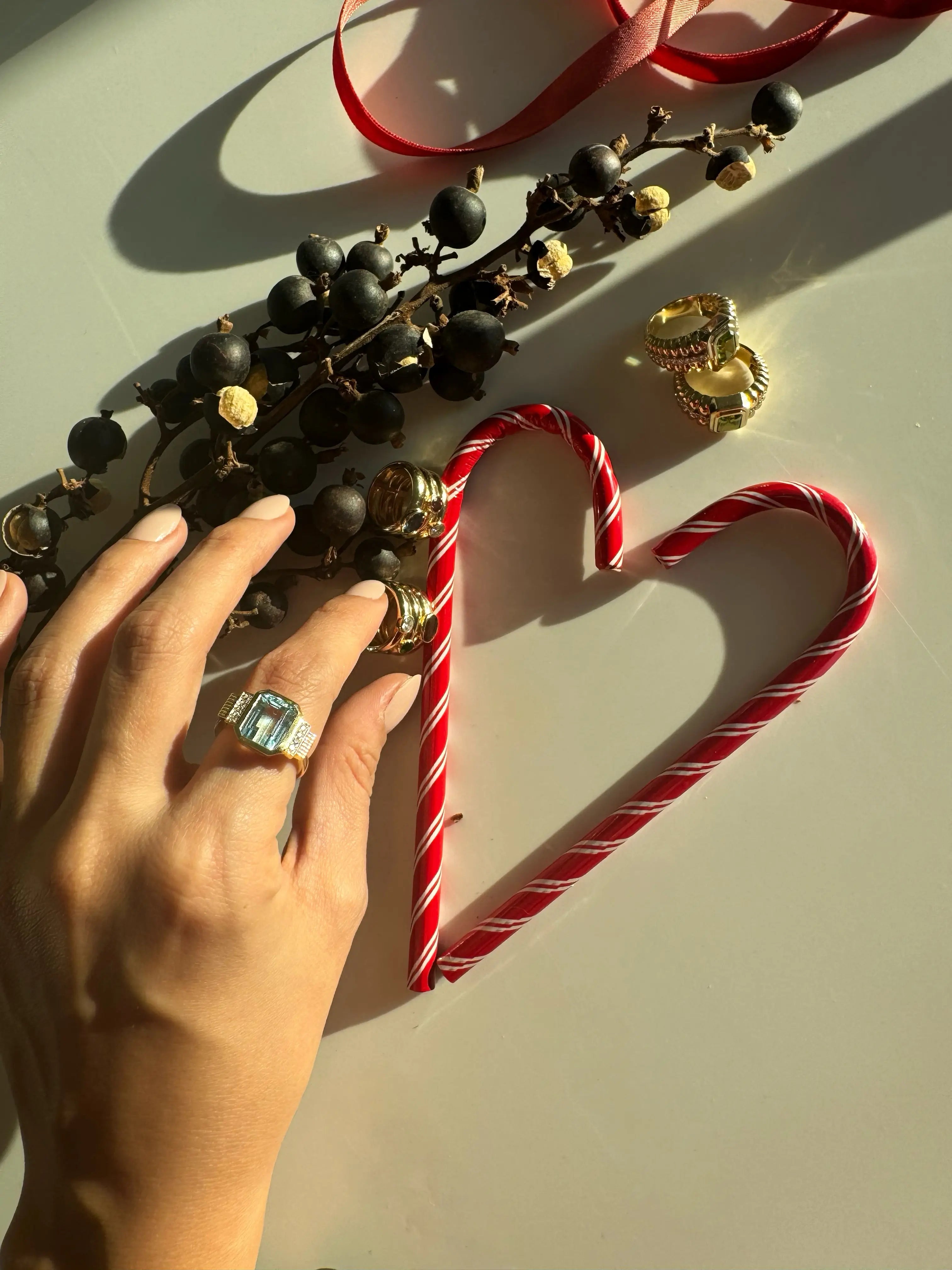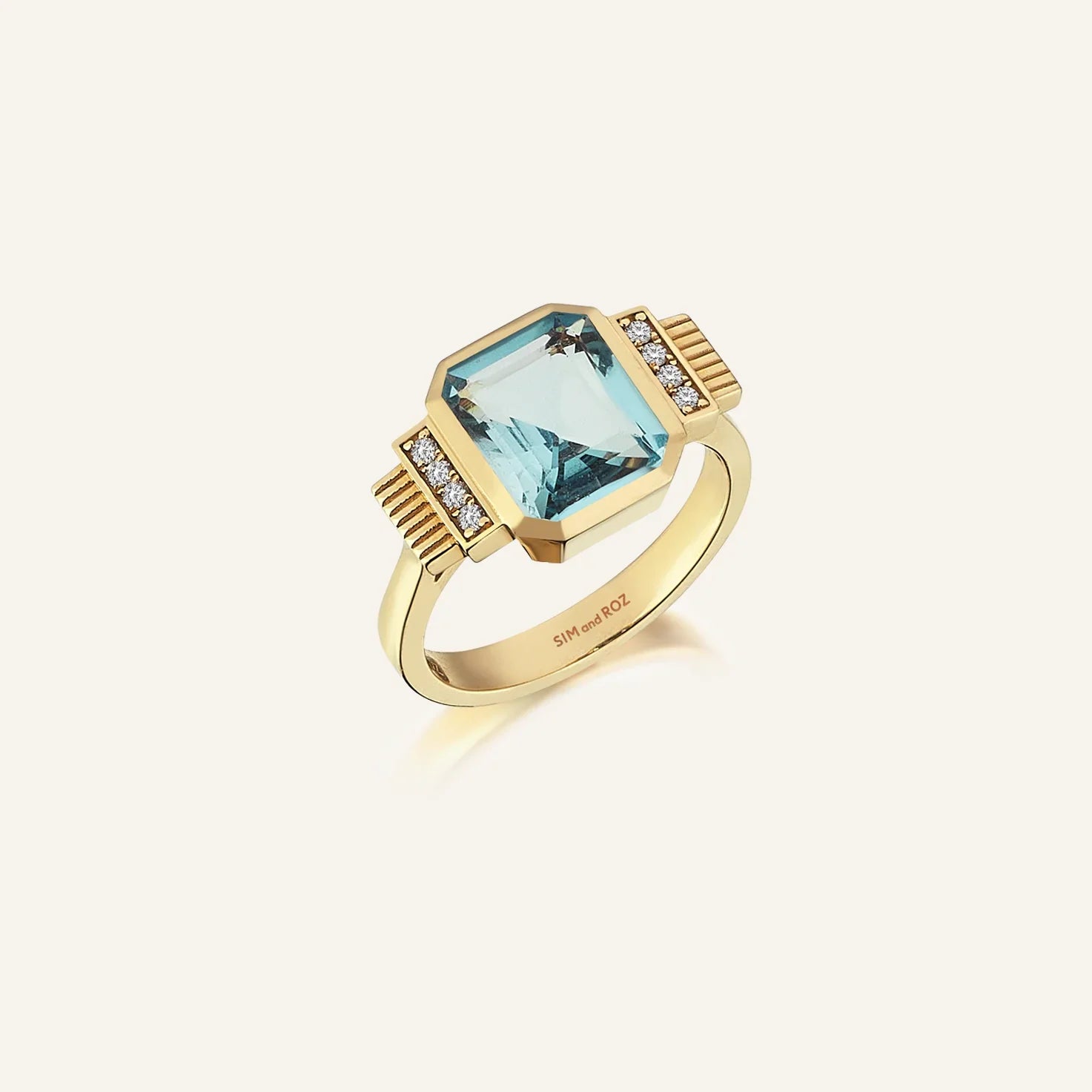 A stunning addition to the Connected Collection, Eon Blue Topaz Ring in Yellow Gold exudes timeless elegance with its hand-set emerald-cut topaz and diamond details. Topaz is known as a symbol of courage and clarity, and has been believed since ancient times to promote calm and spiritual balance.