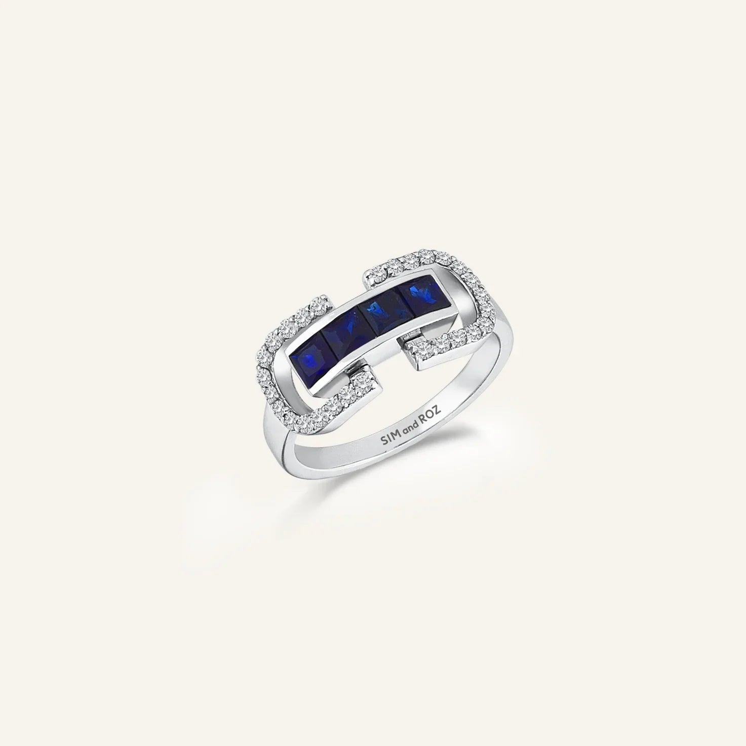 Manifest Diamond & Sapphire Ring is a striking design from the Vortex Collection, combining inner strength and elegance. The ring's modern and sophisticated lines are complemented by carefully placed sapphires and diamonds. Four sapphires at the center add depth to the design, while the surrounding diamonds create a sparkling and elegant look.