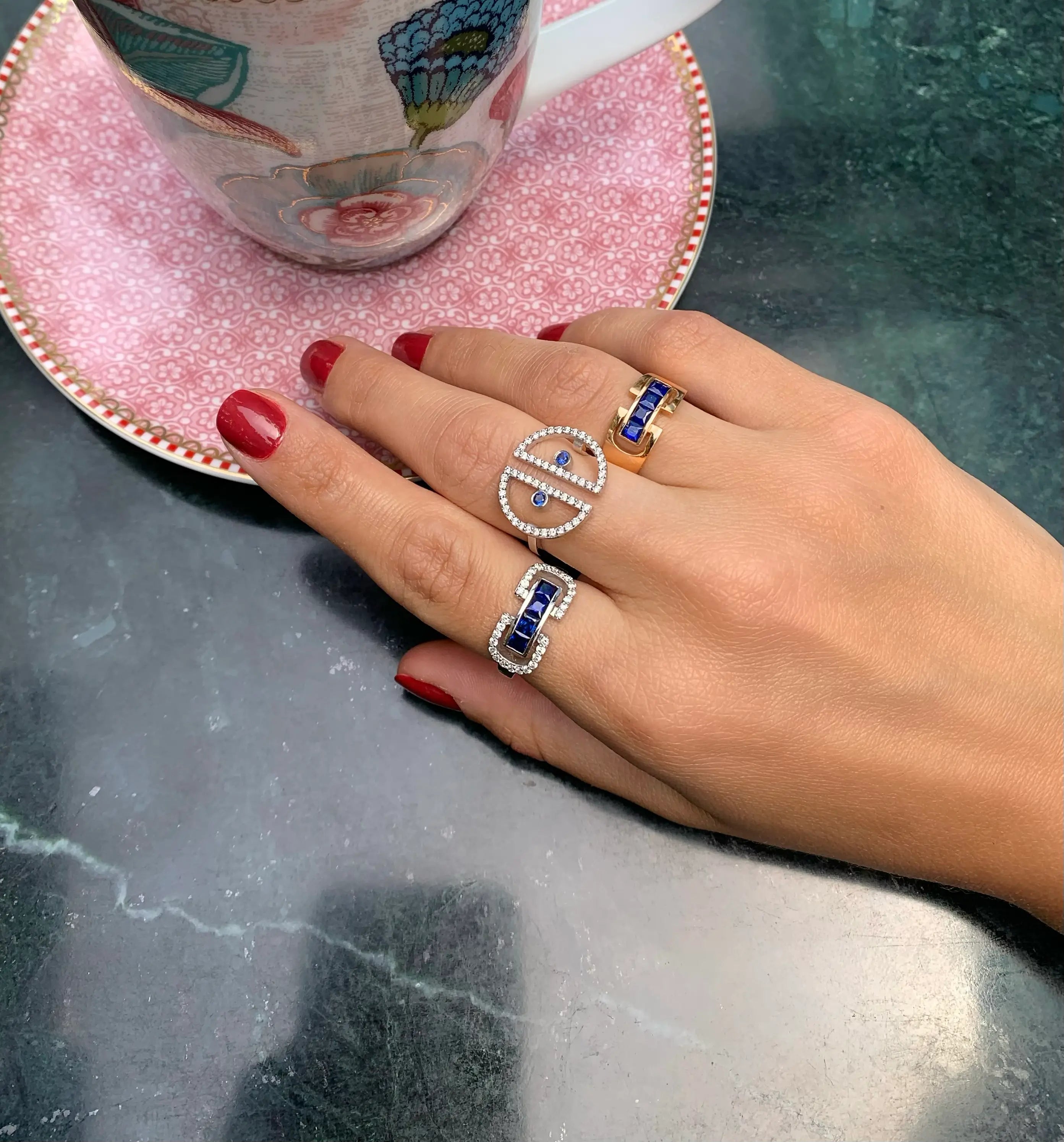 Manifest Diamond & Sapphire Ring is a unique piece that reflects the spirit and manifesting process of the Vortex Collection and adds depth to your style.