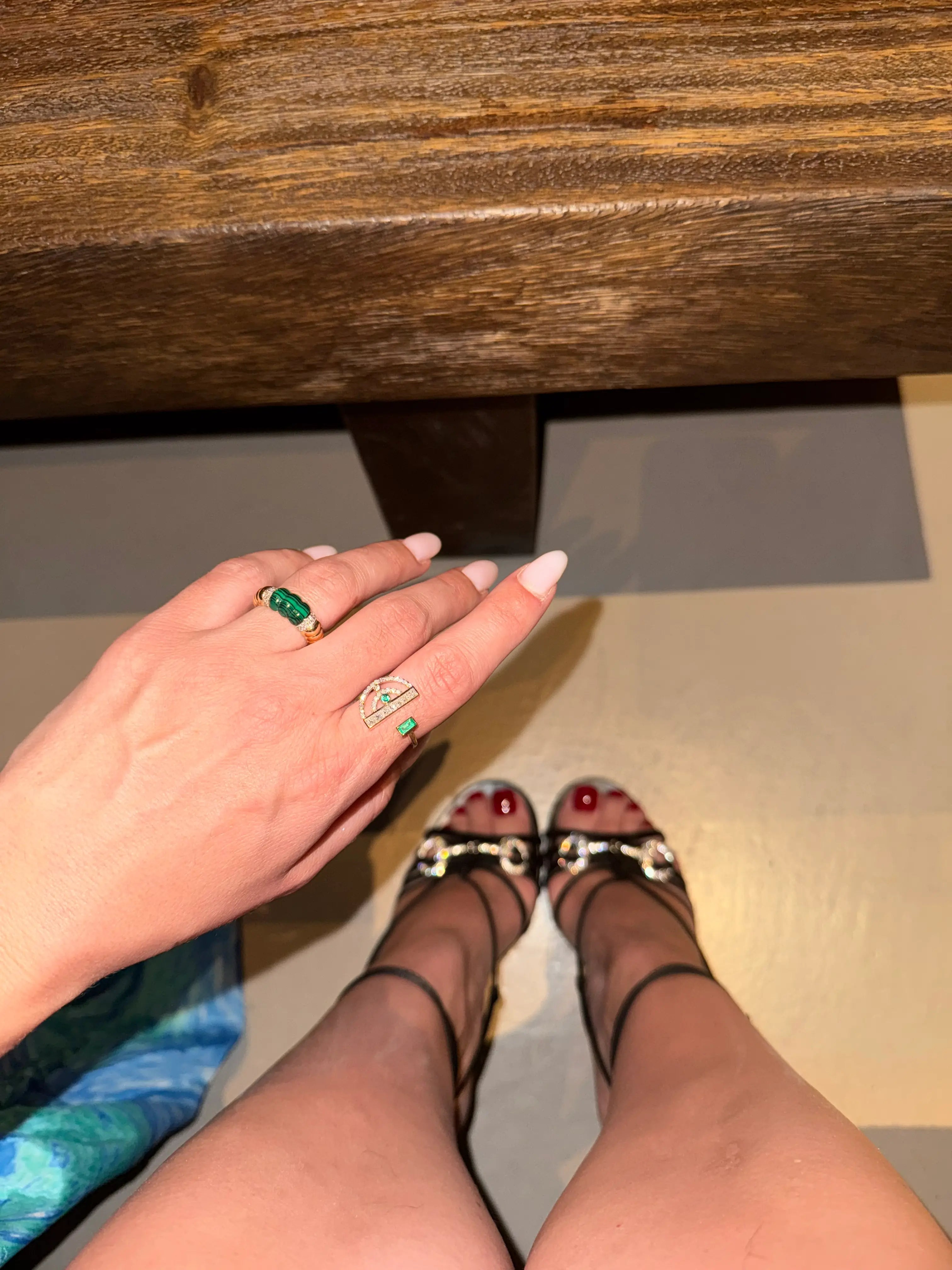 Crafted in 14K gold, this remarkable design brings together the vivid green brilliance of emeralds with the radiant sparkle of diamonds. Representing renewal, vitality, and the constant rhythm of life, emeralds give the ring a deep symbolic meaning while enhancing its timeless elegance.