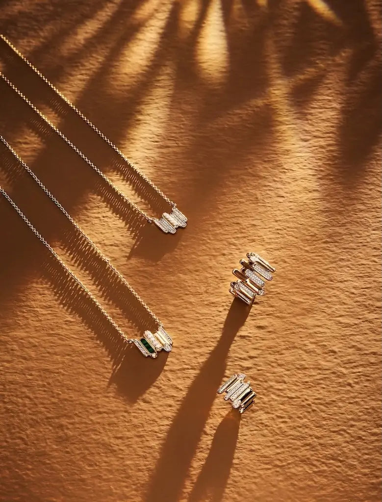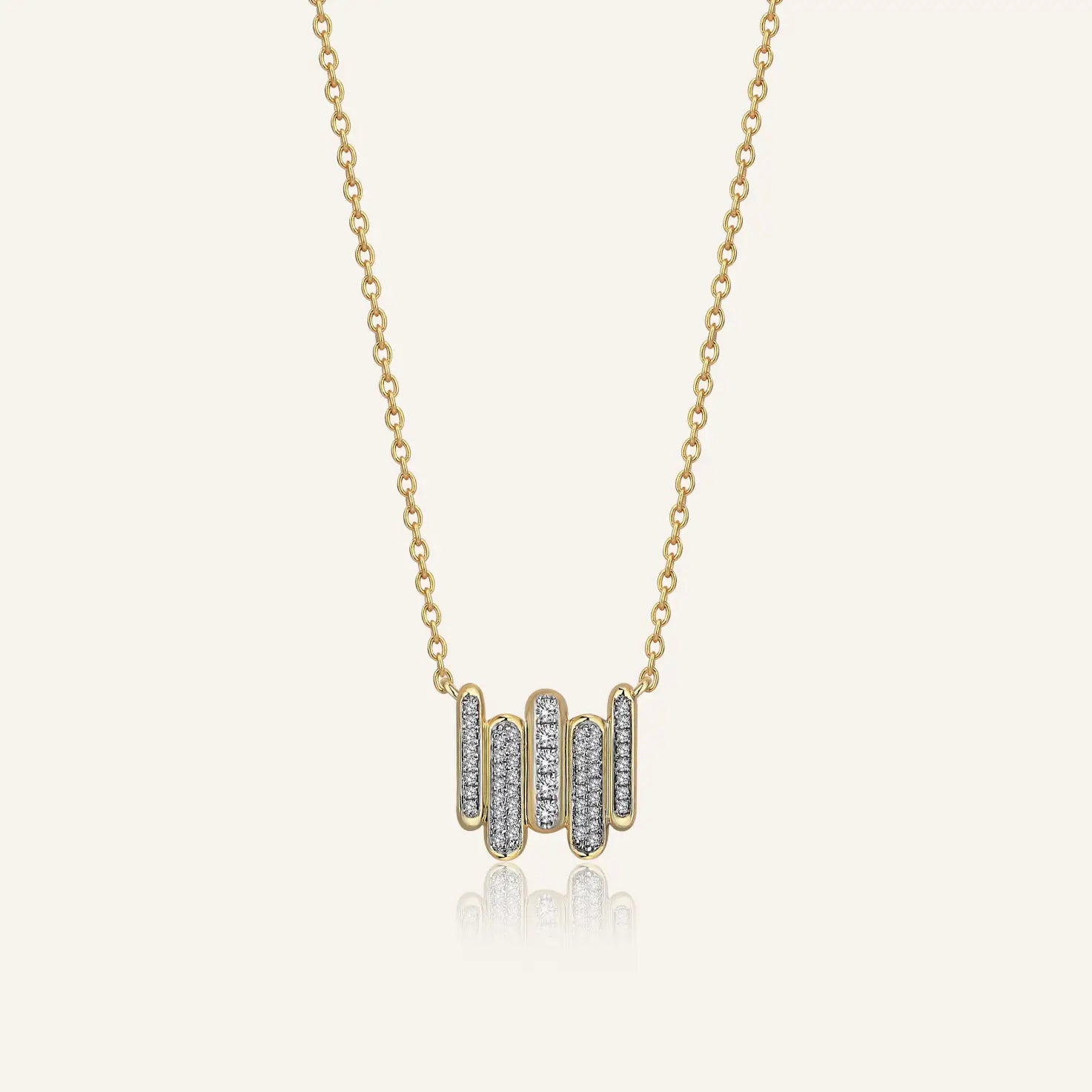 Designed with diamonds set upon alternating thick and slender gold bars, the Beams Mini Diamond Necklace transforms light’s reflections into a contemporary form. Each fragment aligns with the next, echoing the essence of the Fragments Collection — a reminder that what seems small on its own becomes meaningful when united. With its understated brilliance and refined silhouette, this necklace adds a subtle yet captivating glow to everyday style.