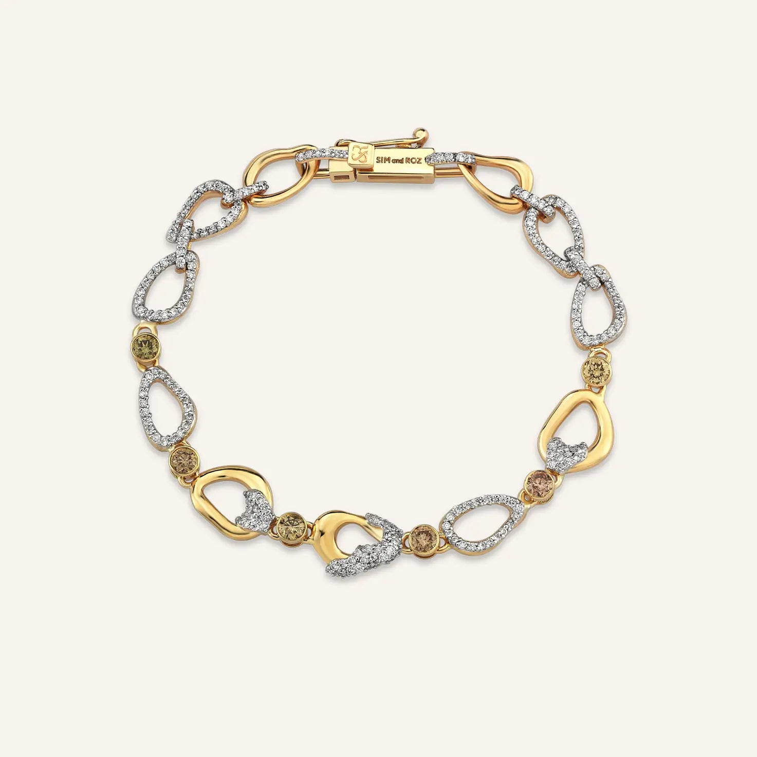Flow Cognac Diamond Bracelet transforms life’s natural rhythm into a refined design through its curving, fluid forms. Along the bracelet, amorphous gold links create a balanced composition — some illuminated with diamonds that elevate the energy, others left polished and bare to reflect calmness and harmony. Cognac diamonds are interspersed throughout, adding warmth and sophistication while giving the bracelet its distinctive character.
