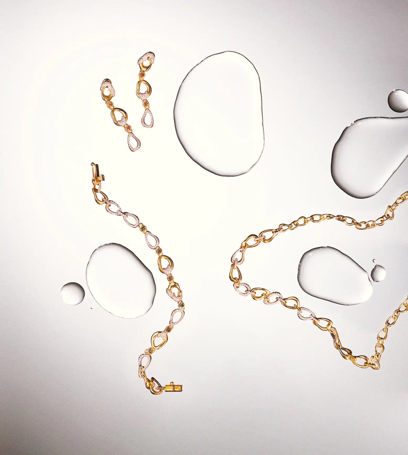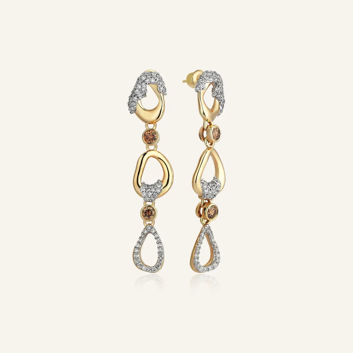 Flow Cognac Diamond Drop Earrings transform the natural rhythm of life into a graceful visual movement through their curving, fluid forms. Diamonds set within catch the light with every motion, while cognac diamond details add a warm, distinctive glow that enhances the design’s organic harmony.