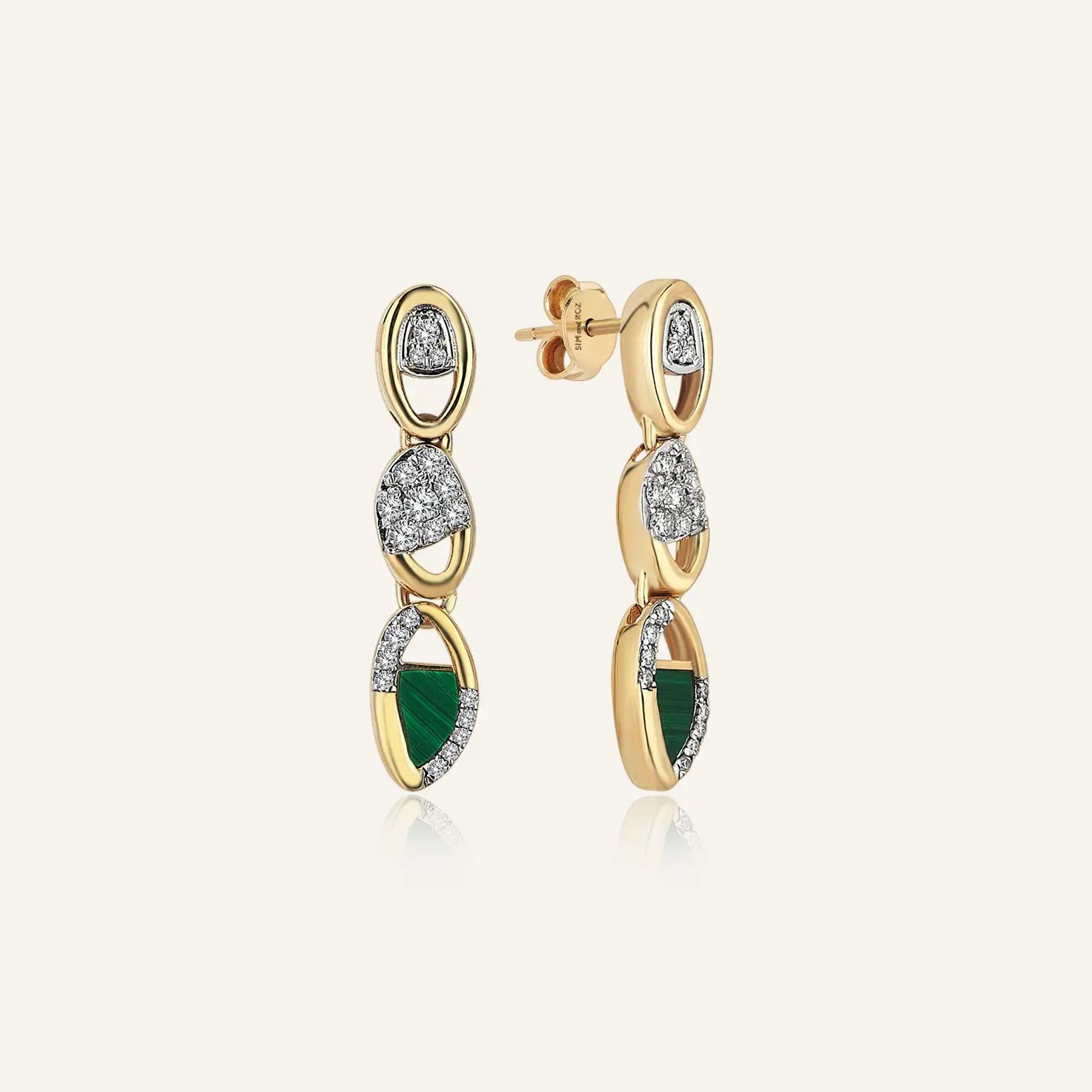 Loops Malachite & Diamond Drop Earrings are inspired by life’s continuous cycles and the beauty found in imperfection. The deep green of malachite symbolizes renewal and emotional balance, while the brilliance of diamonds reflects clarity and strength.