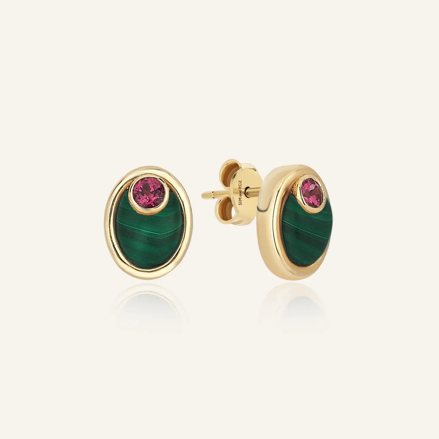 Loops Malachite Studs symbolize balance and continuity within life’s cycles. The rich green malachite reflects traces of the past and inner calm, while the pink tourmaline above it embodies vibrant energy and the joy of the present moment.