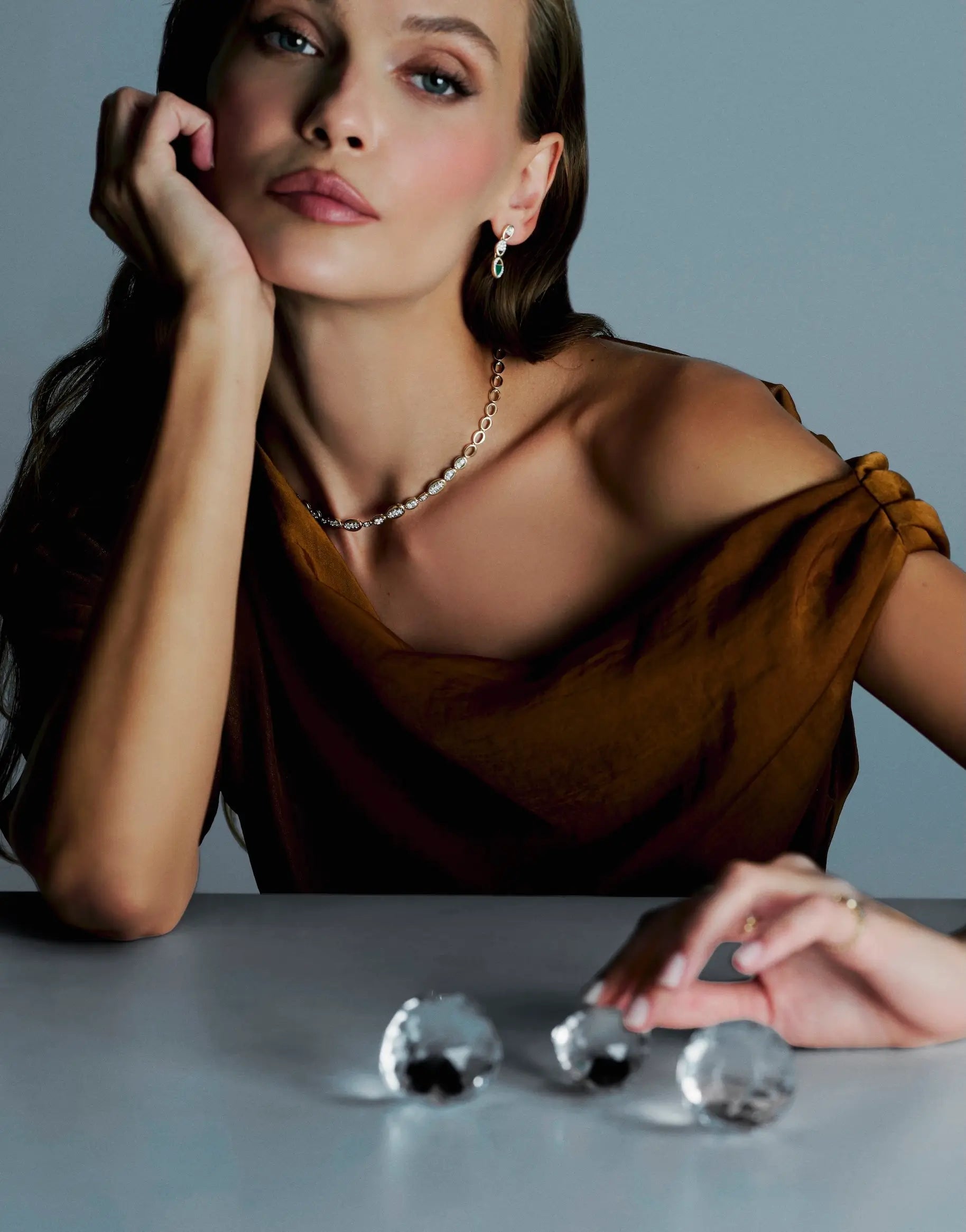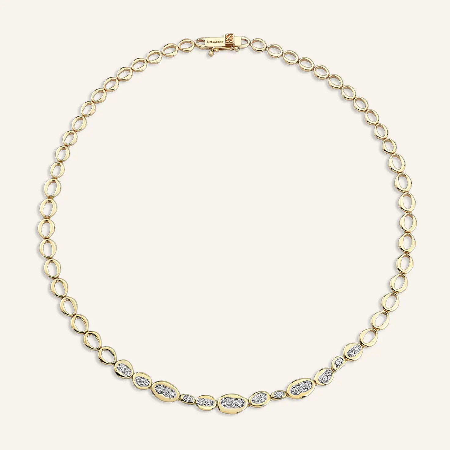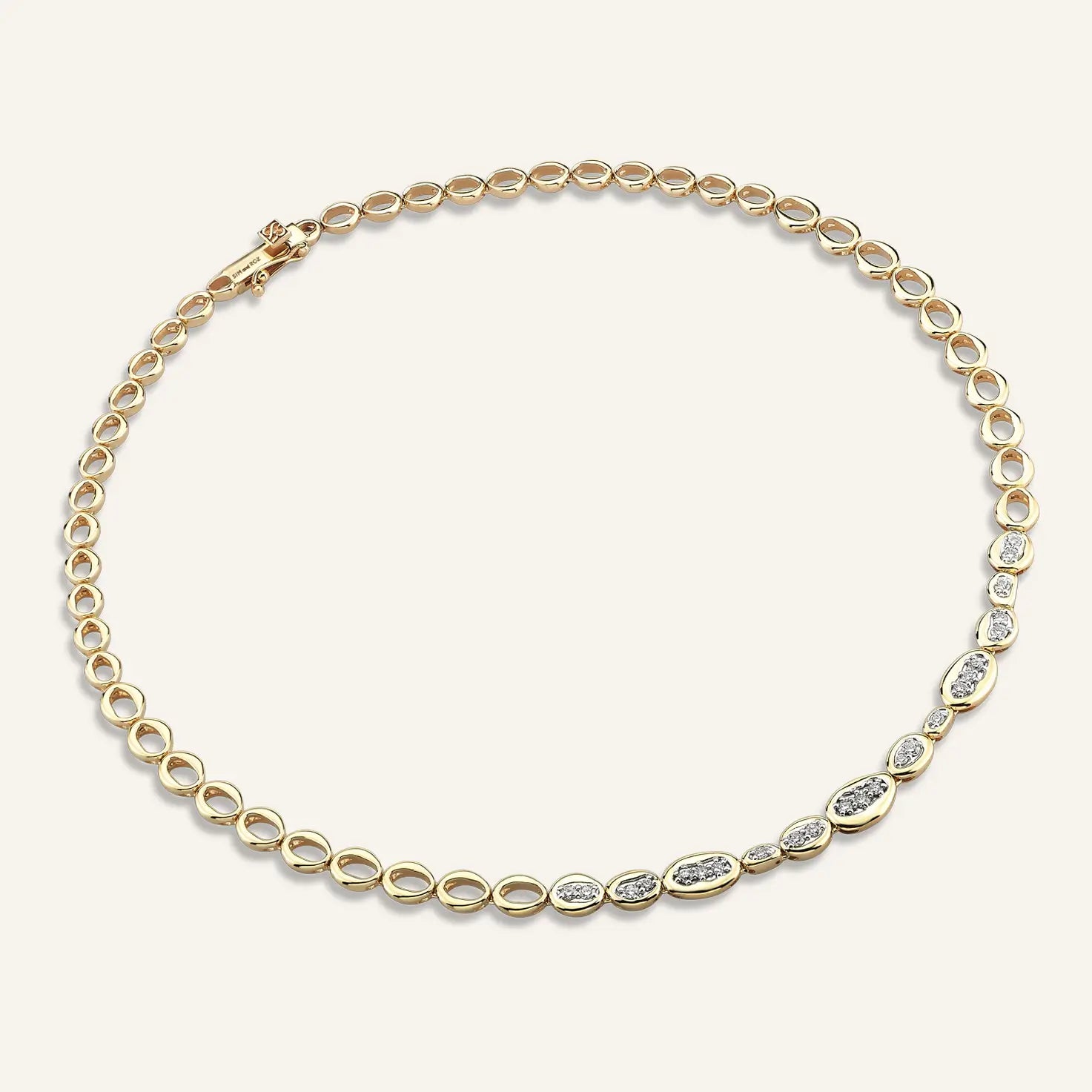 Loops Diamond Necklace celebrates strength within connection — a reflection of life’s ever-intertwined cycles. Each oval link, bold yet fluid, carries its own story: some fully set with diamonds, others left in pure gold, representing the balance between presence and space, fullness and pause. Together, they form a continuous rhythm — imperfect, organic, and deeply harmonious.