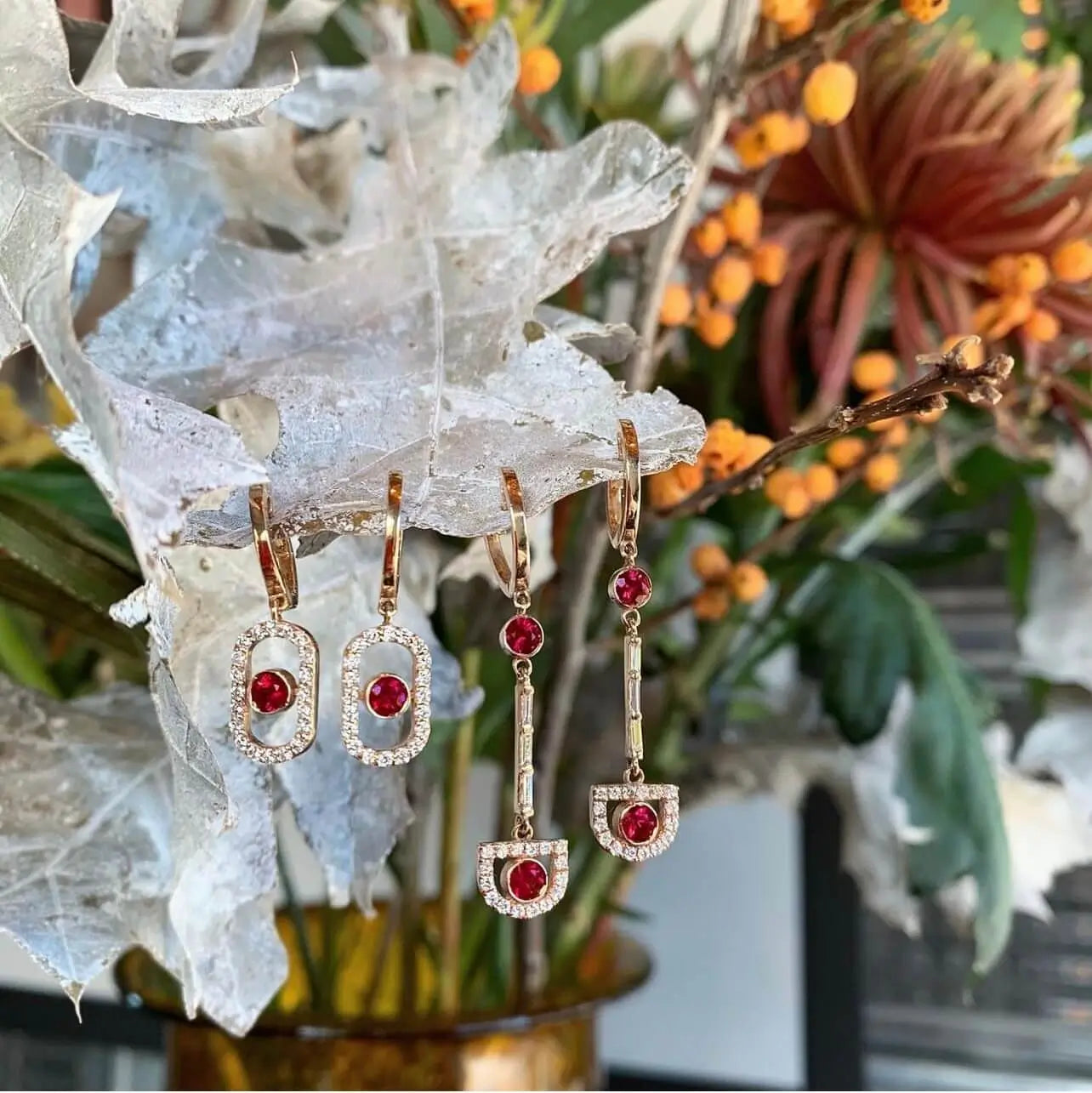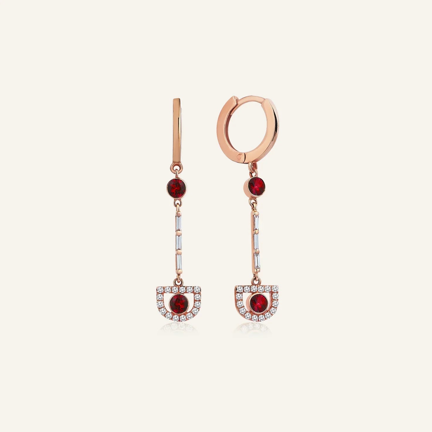 Comet Ruby & Baguette Diamond Drop Earrings, a dazzling piece from the Orbits Collection, are inspired by the trail of a comet soaring through the sky. These unique 14K gold earrings combine the vibrant red hues of ruby stones with elegant diamond baguettes to create a design that is both modern and meaningful. Their dynamic structure energizes every moment, while the meticulous craftsmanship in the details reveals the uniqueness of the design.