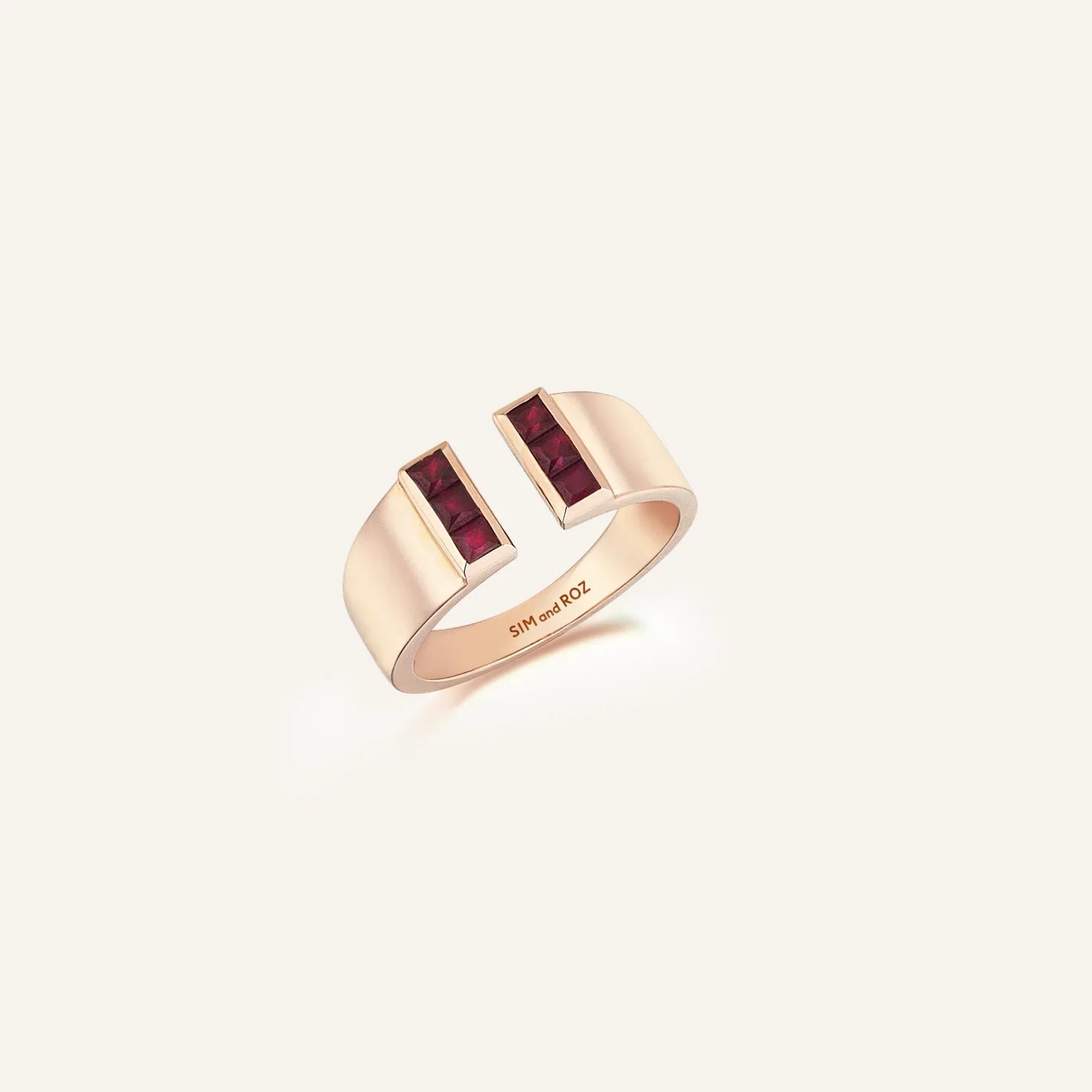 Loa Ruby Ring is an elegant piece that combines the Vortex Collection's modern, minimal design with the powerful, deep colors of ruby stones. Crafted from 14K gold, this ring exudes sophistication and stands out with its open center design. This open design adds lightness and unique style to the ring, while also evoking a sense of elegant balance.